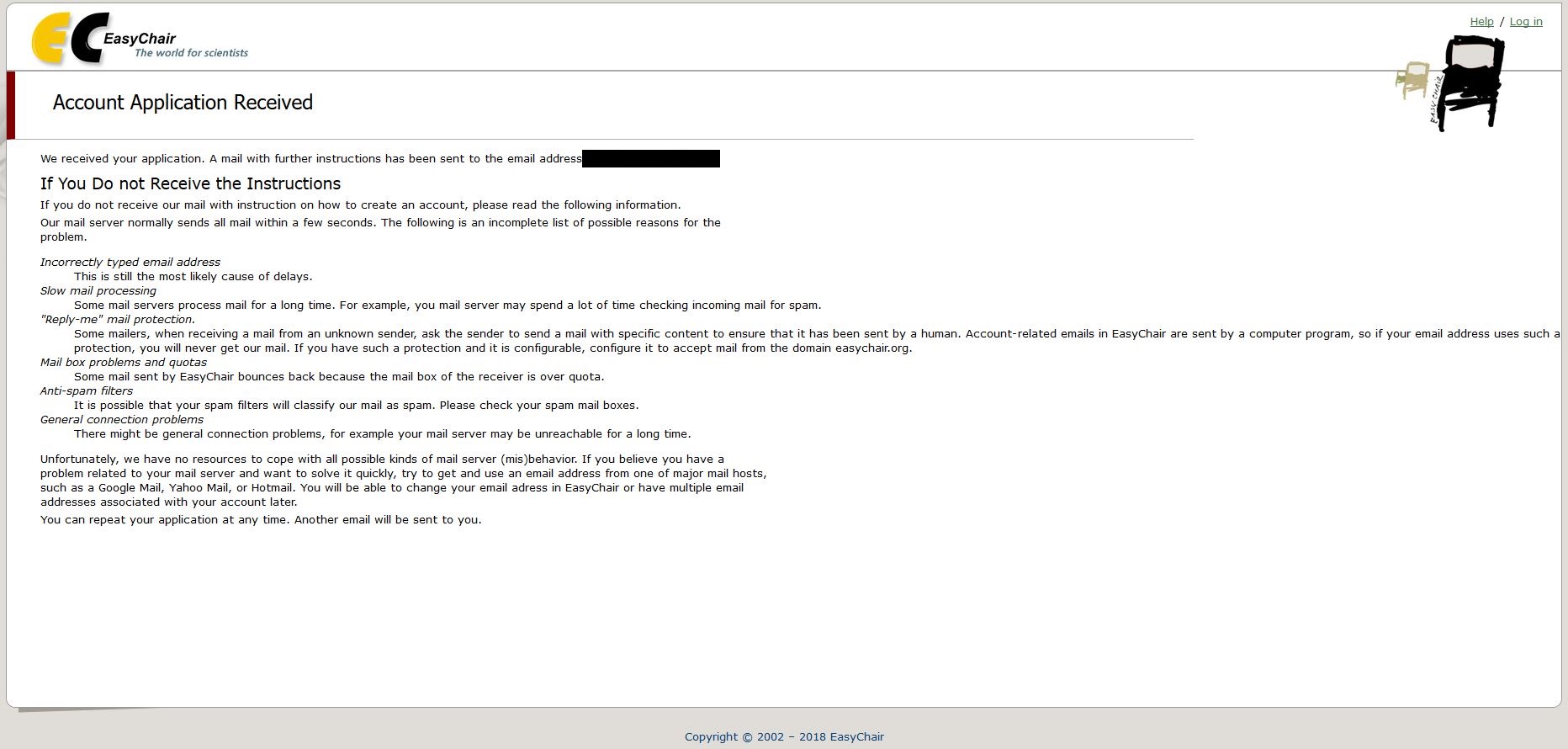 7. You will receive a notification that your account has been created. To log in to EasyChair and submit a paper, follow the link provided on this page.