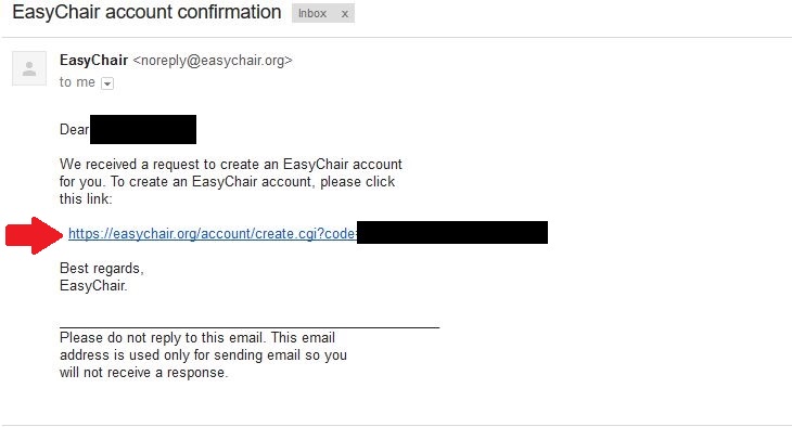 5. When you open the email from EasyChair, you will see a link. Click the link to verify your account.