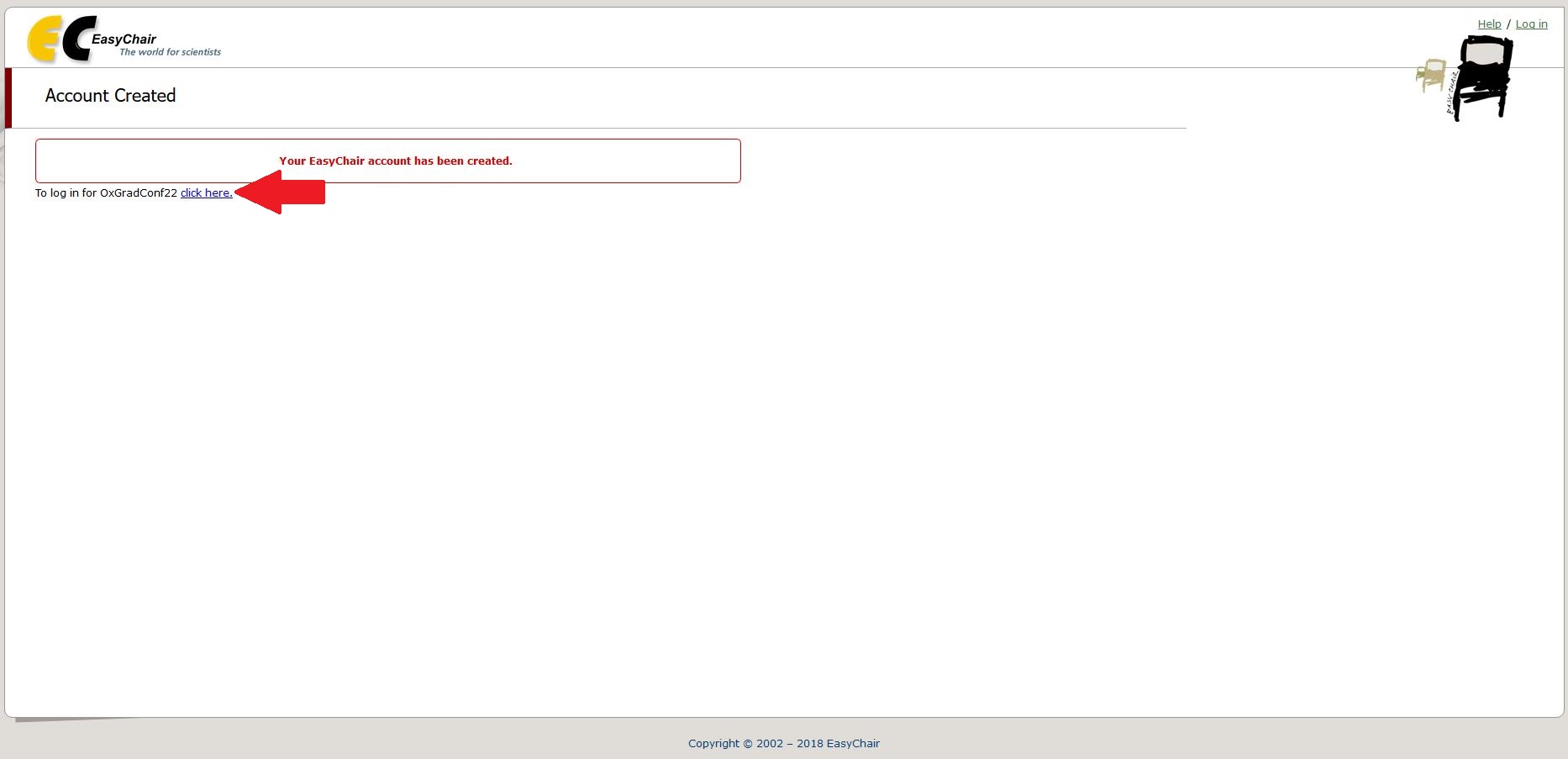 7. You will receive a notification that your account has been created. To log in to EasyChair and submit a paper, follow the link provided on this page.